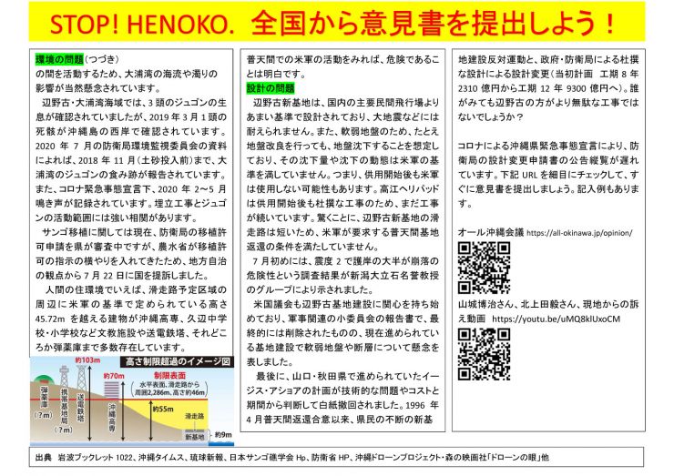 STOP!HENOKO. 全国から意見書を提出しよう!(あいち沖縄会議)