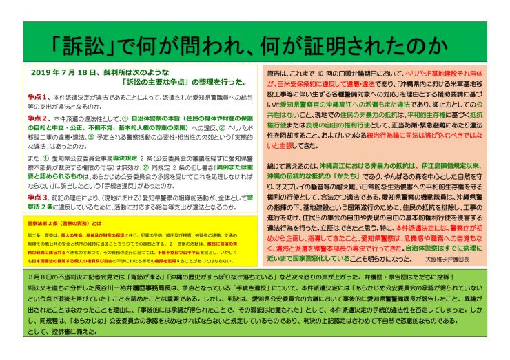 「訴訟」で何が問われ、何が証明されたのか(沖縄高江への愛知県機動隊派遣違法訴訟の会)
