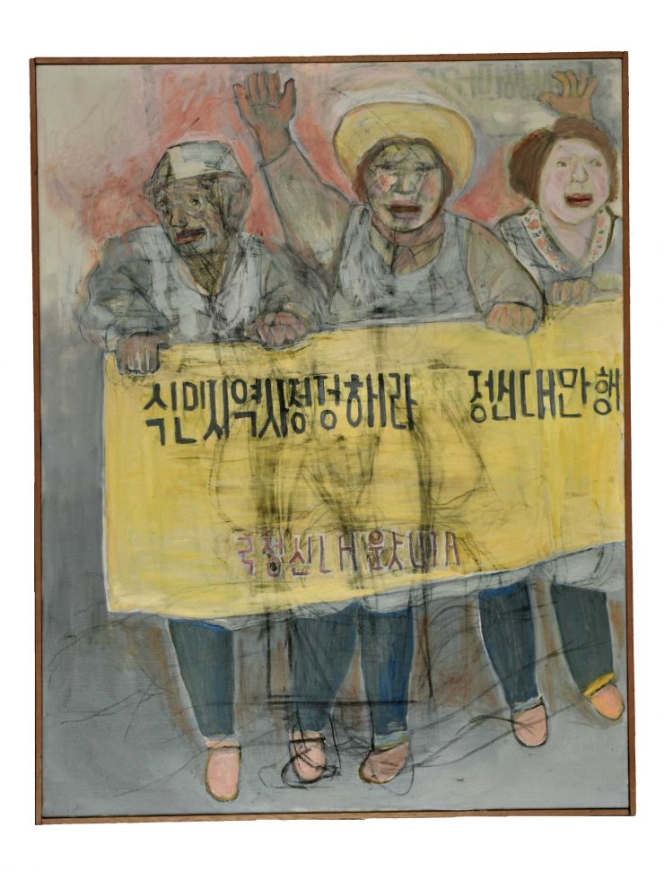 描かれている「慰安婦の叫び」は、非人道的行為、戦争犯罪を告発している。